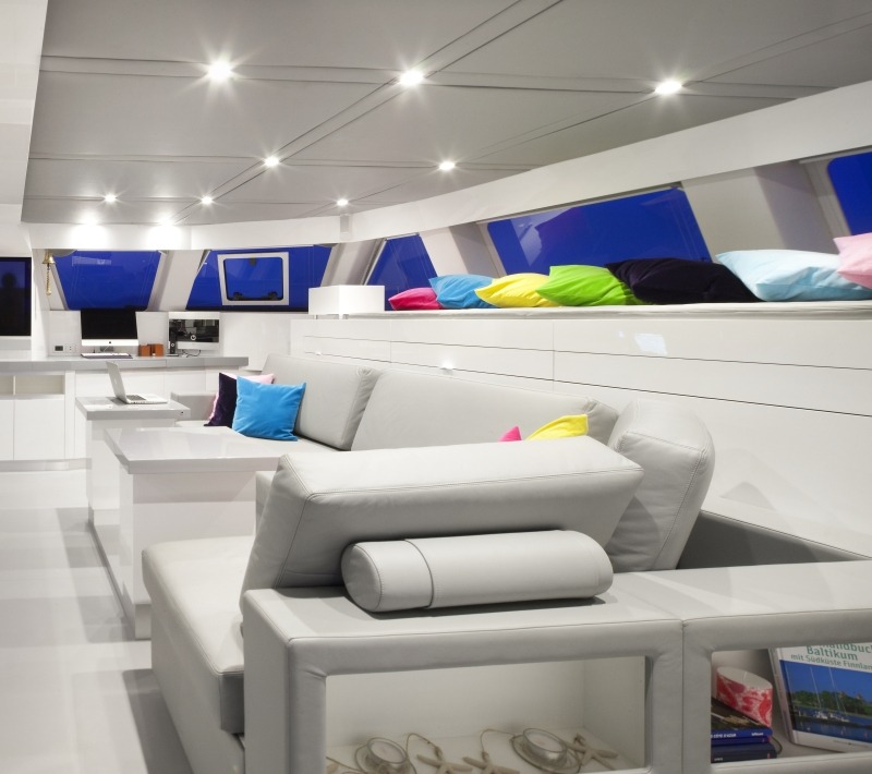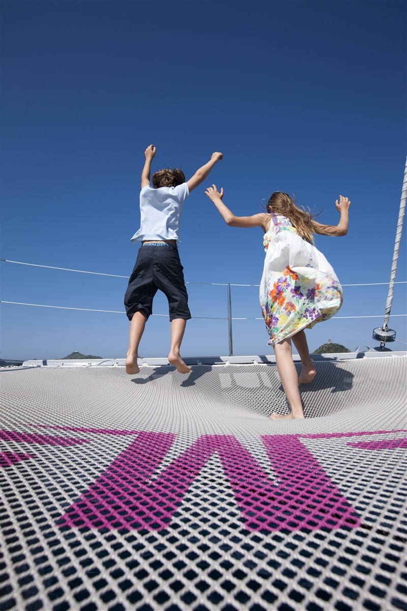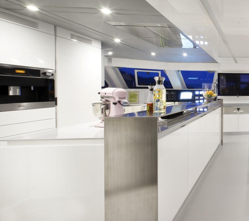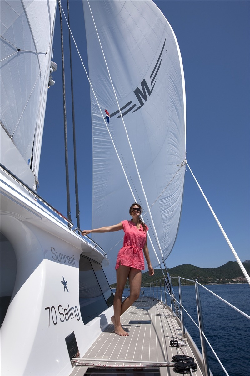 With undeniable allure and striking style that begs to be noticed, luxury charter yacht MAVERICK is an exemplary specimen of quality craftsmanship and refinement. Distinctively different, this superb Sunreef 70 sailing catamaran launched in 2013 is chic, modern, and supremely sexy featuring an utra-sleek profile, flawless interior design, exceptional amenities, and the latest in entertainment technology. Vibrant yet serene, the luxe interior of MAVERICK meticulously designed in a delicious color palette of cool gray, crisp white and splashes of glamorous cerise makes a stunning first impression. Open and airy with modern and clean décor the atmosphere is exceedingly refreshing. The bright and spacious salon is spectacular and features magnificent panoramic windows offering guests expansive sea views while underway and scenic vistas at anchor. Sumptuous comfort and convenience was at mind when designing the exquisite cabins on MAVERICK, fitted with the finest in linens, Schramm mattresses tailor-made in Germany, and Loewe entertainment systems optimized with Airspeaker, they promise to deliver a heavenly experience. Capable of accommodating up to 9 to 11 guests in 5 elegantly-appointed cabins, MAVERICK offers a flexible charter layout great for families consisting of 3 VIP double cabins with king beds, one of which has a very small Pullman intended for a baby (1.2m/ 4ft long). There is also another guest cabin with 2 single beds and a Pullman (only for 1 small child), and one single forepeak cabin, which is only for 1 person with entrance only from the outside and no bathroom. An oasis of indulgent pleasures, luxury catamaran MAVERICK offers splendid areas for entertainment and relaxation in the sun or shade. Delightful evenings can be spent savoring delectable alfresco meals out on the aft deck and blissful days can be enjoyed up on the spacious flybridge which offers a flexible dining area that converts to huge sprawling sun lounge. Equipped with plenty of toys, rest assured that there will never be a dull moment spent onboard charter yacht MAVERICK. Guests can have their pick from an extensive list of exciting options including water skis, kayaks, stand up paddle boards, Seabobs, a kneeboard, a wakeboard, a windsurfer, dive gear, and much more. An impressive charter yacht on every level, from style and luxury to form and function, sailing catamaran MAVERICK is simply marvelous. For an experience like no other, this outstanding yacht delivers it all.