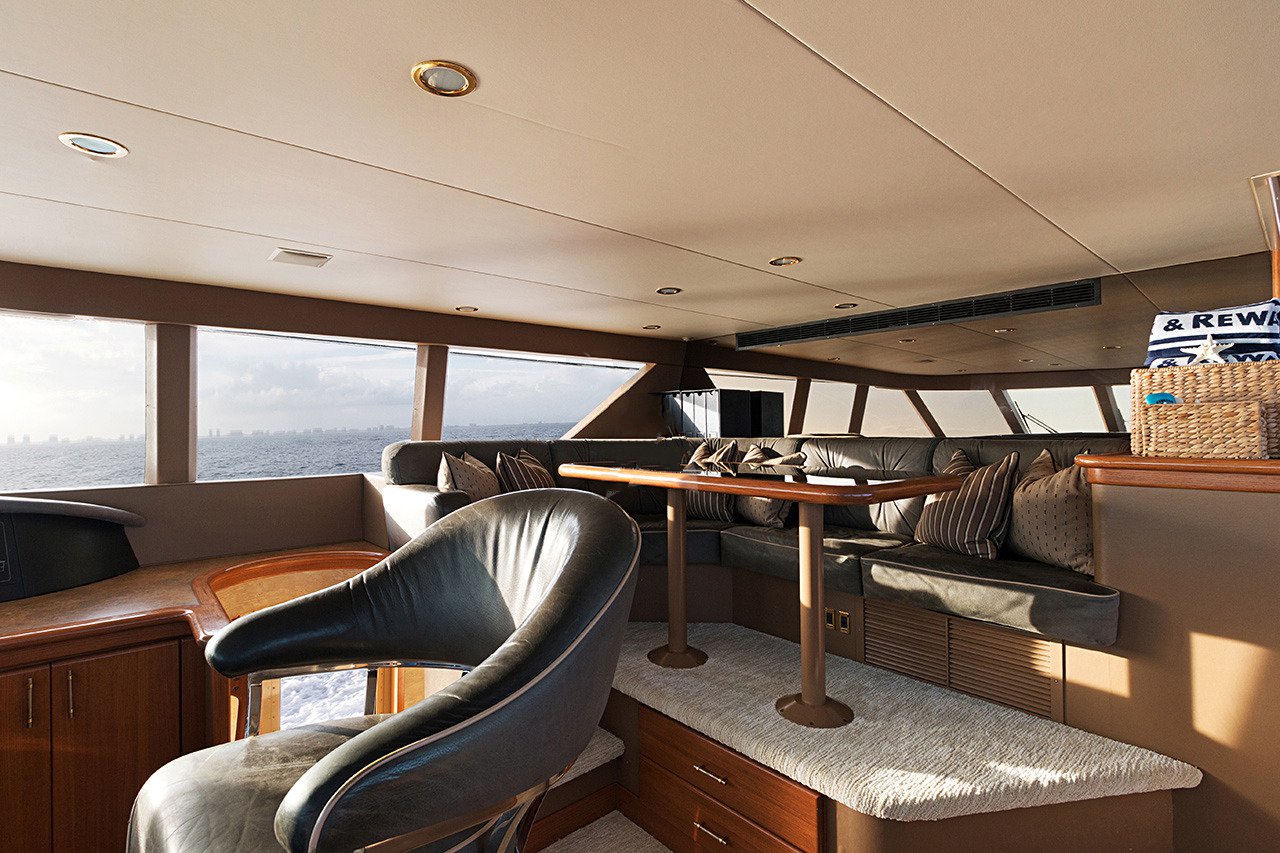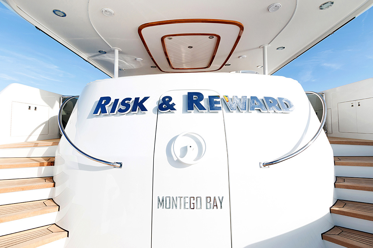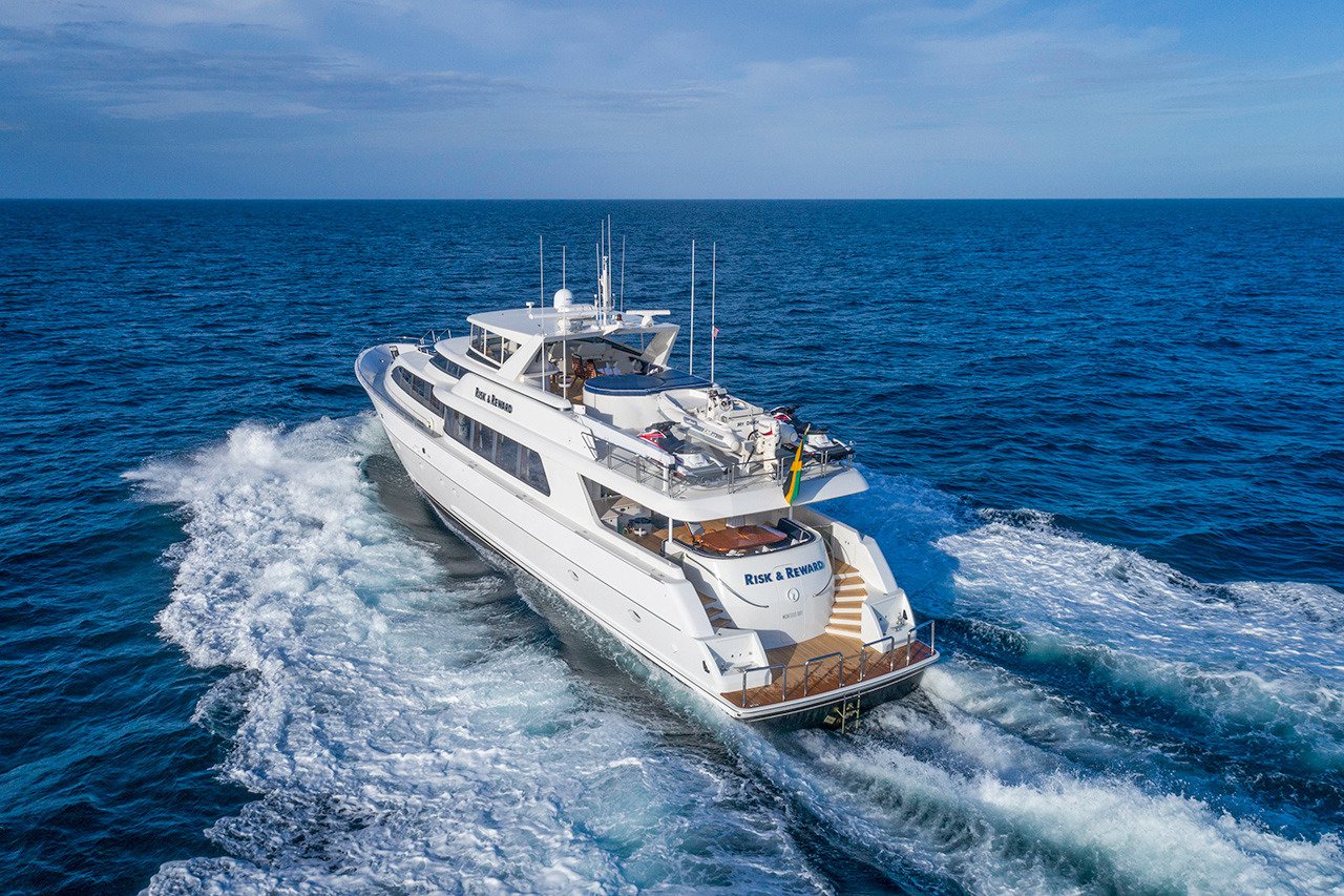 RISK & REWARD represents the best of the Westport 112 series on today's charter market! Having just completed a refit, her beautiful interior is crisp and fresh and offers many dining and lounge areas for charter guests to enjoy. Her voluminous layout offers something for every charter guest, making her an ideal choice for large groups or families. Her shallow draft is perfect for navigating the waters and islands of the Bahamas. RISK & REWARD accommodates 8 guests in 4 staterooms, including a master suite and a VIP stateroom. Her enthusiastic and active crew looks forward to showing guests the best the Bahamas has to offer.