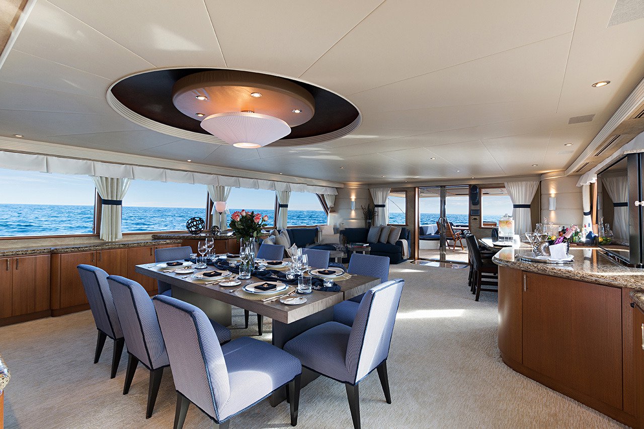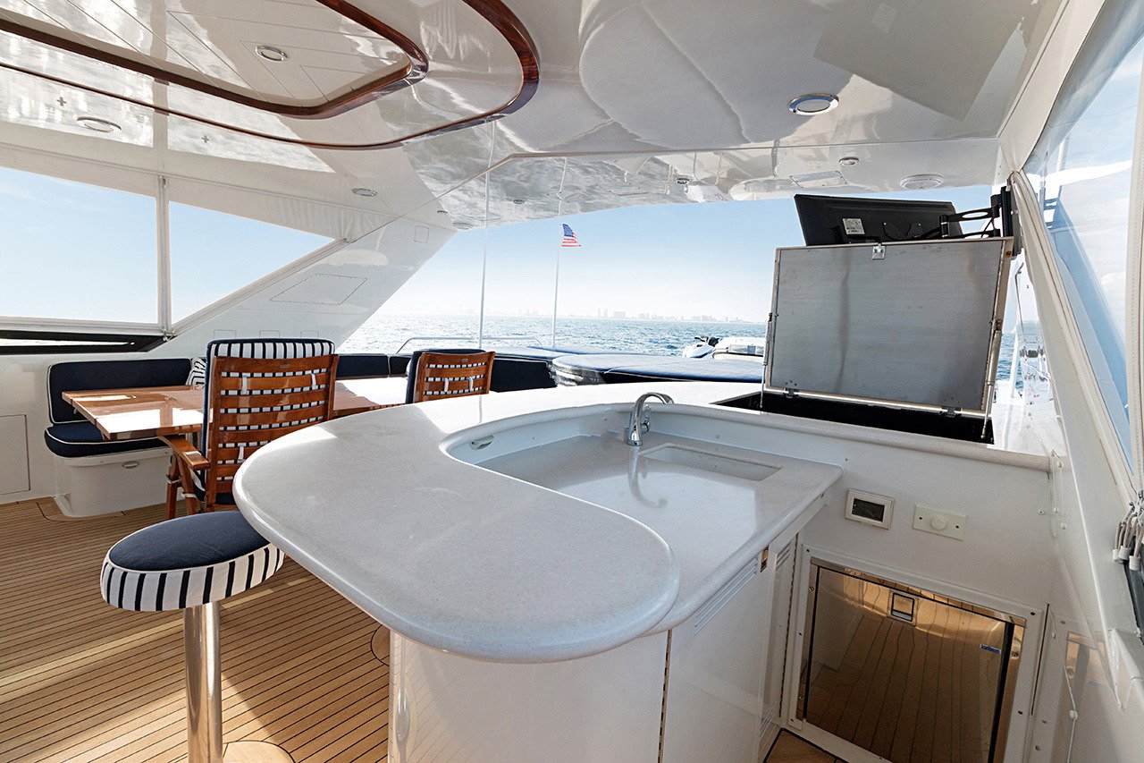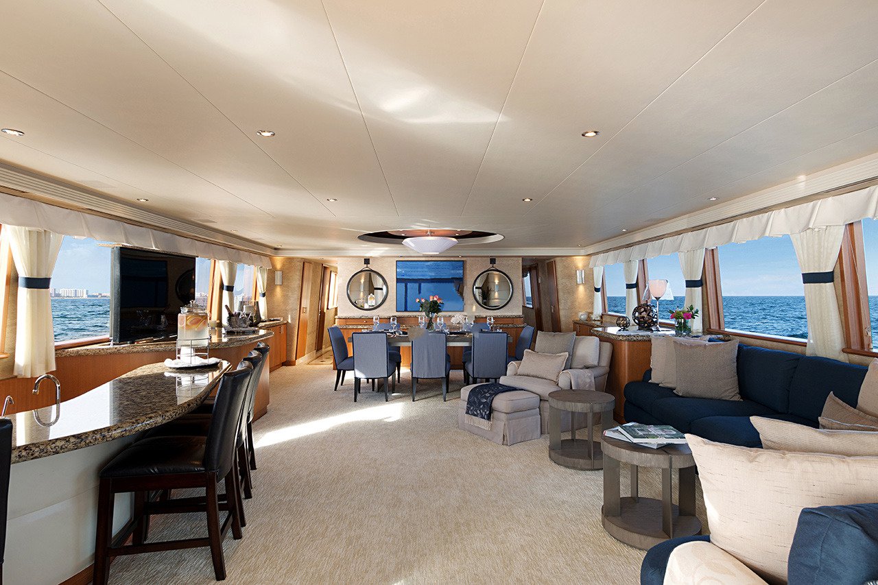 RISK & REWARD represents the best of the Westport 112 series on today's charter market! Having just completed a refit, her beautiful interior is crisp and fresh and offers many dining and lounge areas for charter guests to enjoy. Her voluminous layout offers something for every charter guest, making her an ideal choice for large groups or families. Her shallow draft is perfect for navigating the waters and islands of the Bahamas. RISK & REWARD accommodates 8 guests in 4 staterooms, including a master suite and a VIP stateroom. Her enthusiastic and active crew looks forward to showing guests the best the Bahamas has to offer.