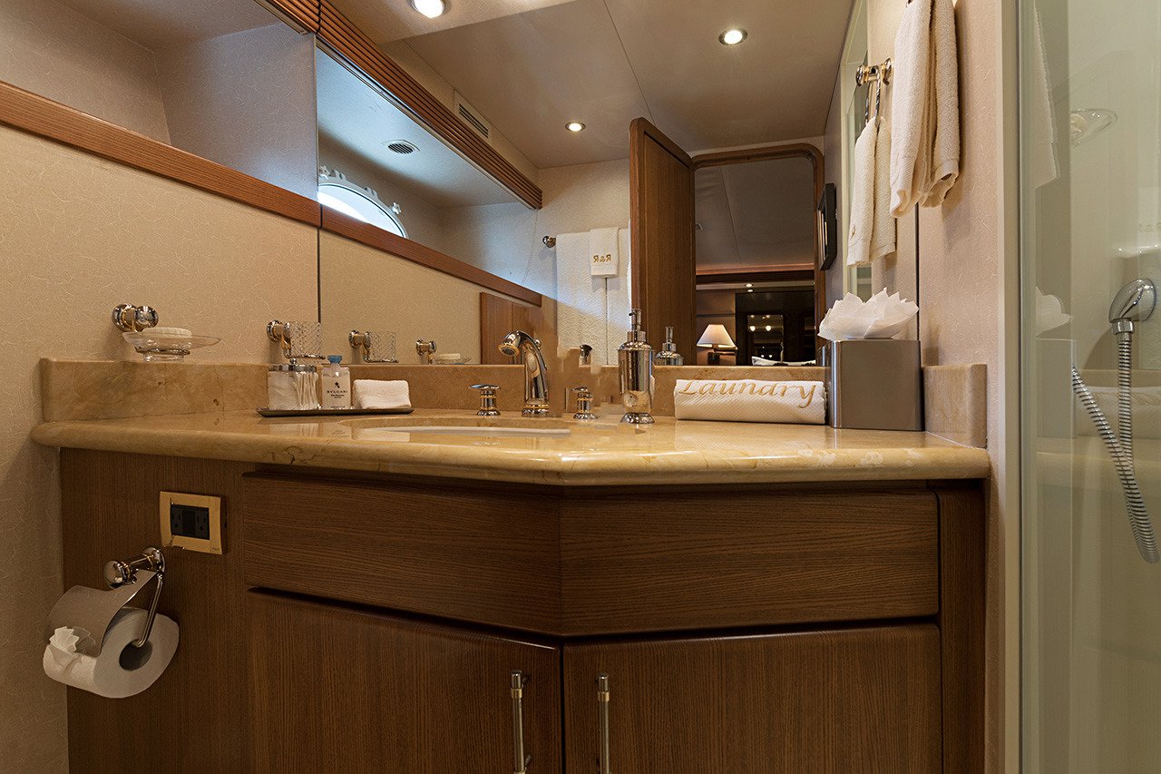 1 King master suite, 1 forward VIP, 1 Double, 1 convertible twin/queen cabin