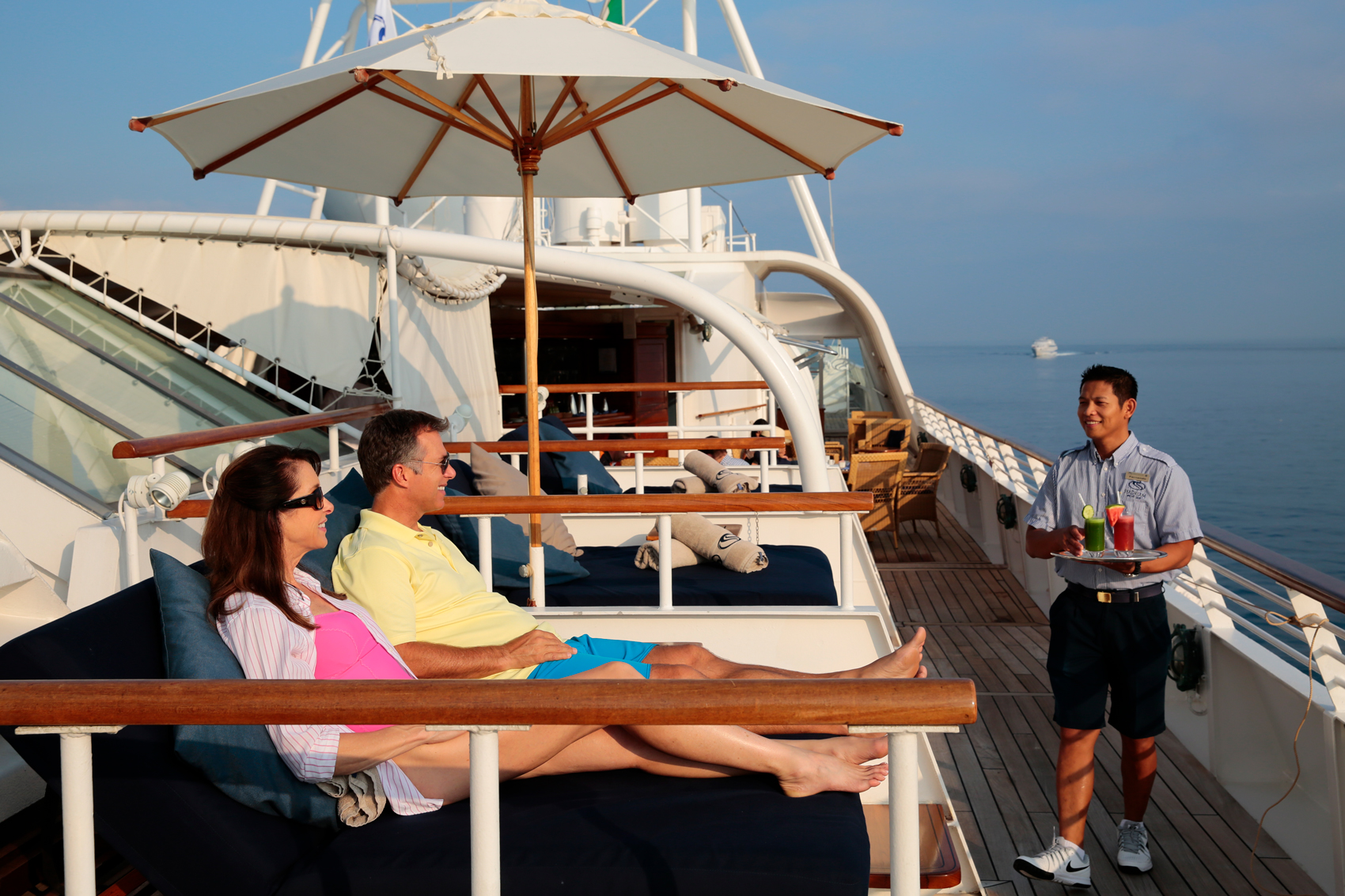 Luxury events charter yacht 'Sea Dream’ is a magnificent 344 foot / 105meter motor yacht which offers large groups the rare opportunity to indulge in private yacht luxury together in a group as one large charter party. This is achieved through Sea Dream’s exceptional size, attention to detail, quality, and also her very high staff to charter guest ratio. SNEED TROPICAL YACHT CHARTERS can assist in arranging your every tailored desire on Sea Dream from a personalized charter itinerary and dinning to favored activities & entertainment. To enhance the charter experience you can fly your corporate flag aboard Sea Dream and your company’s logo on gift items from the yacht’s boutique. Whether you are interested in a privately organise vacation or a corporate event, luxury yacht Sea Dream can offer what few yachts in the world can. Previous happy corporate clients which have chartered Sea Dream for special events include Jaguar, Nokia, GE, and Chrysler, RJ Reynolds as well as some notable private individuals. ‘Sea Dream’ offers a guest to staff ratio of almost one to one - with 95 international crew members there is more than one staff member to every guest, on many charters. All charter guests are given fantastic service and personal attention! The cuisine on ‘Sea Dream’ is exceptional. The luxury charter yacht also offers a superb selection of fine wines as well as very palatable complimentary wines. The main salon is enjoyed by guests for pre dinner cocktails on some evenings, or movie presentations or dancing, as the opportunity to listen to the yacht’s pianist. ‘Sea Dream’ also has a separate updated dining salon featuring all new furnishings, flooring and wall coverings. There is also an impressive new boardroom area which can be closed off for private dining. Sea Dream boasts a spectacular ‘open air’ area with Spectacular Ocean views which offers charter guests the opportunity to enjoy ‘Top of the Yacht’ bar cocktails before dinner as well as after dinner drinks while relaxing on the lovely Balinese sun beds. Also Sea Dreams new ‘Topside Restaurant’ provides a superb outdoor dining opportunity for while the yacht’s elevated dining area gives an unobstructed view to the sea. ‘Sea Dream’ now also offers an exceptional library with many games, two computers for guest access to the internet (all staterooms are internet ready) and over 1000 books. Luxury yacht ‘Sea Dream’ provides many health and relaxation facilities with an Asian Spa and Wellness Center which has huge windows overlooking the passing sea. The spa has a beauty salon, 3 steam showers, 2 treatment rooms, and a sauna. There is yoga and tai chi classes put on by the fitness therapist and there is also a new fitness center. Sea Dream’ features a fantastic pool and hot tub with a superb relaxation area around it.
