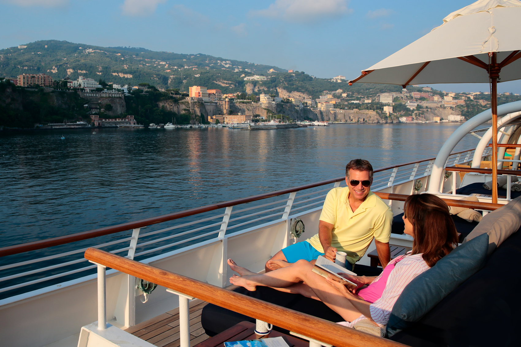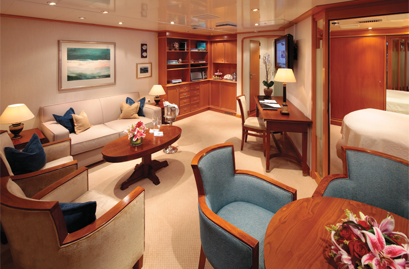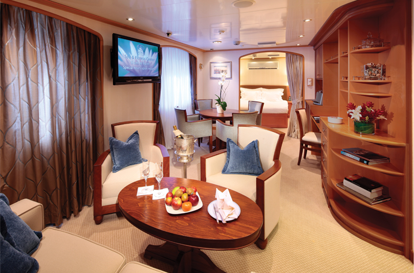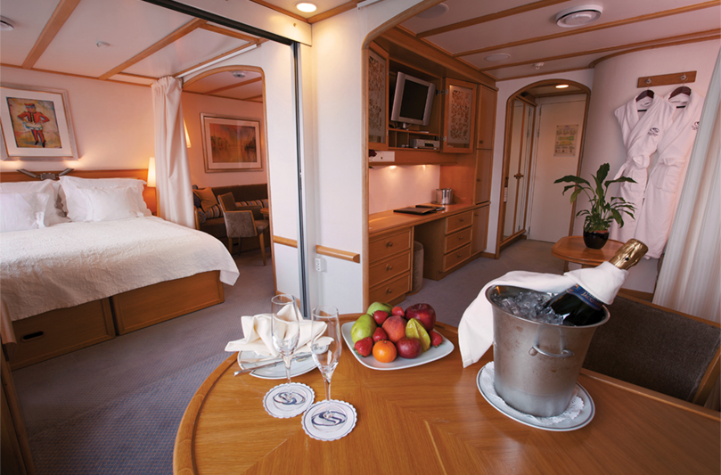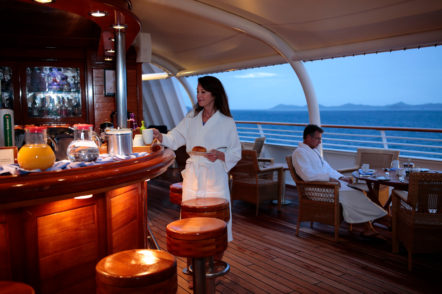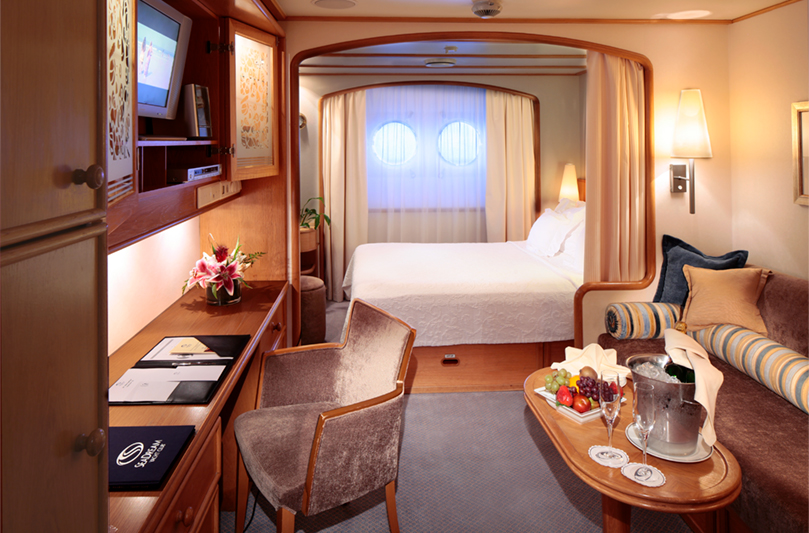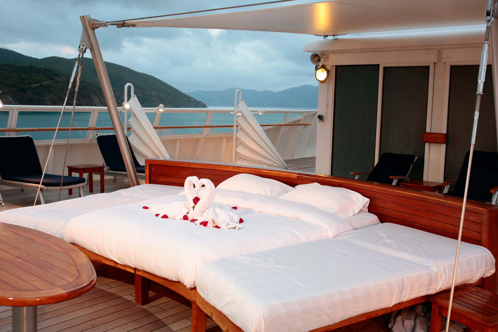 ’Sea Dream’ provides accommodation for up to 112 yacht charter guests in 56 generous staterooms. This includes 54 ‘Yacht Club’ staterooms and one luxurious owner's full suite, in the following layout. The Owner's Suite is a dramatic, 450 foot squared space for the highly discriminating guest seeking the best that the yachting lifestyle has to offer. The suite includes a beautifully appointed separate bedroom, a living room (with a large dining table) as well as a bathroom featuring a fine view of the sea with both shower and tub. There is also a separate guest’s ensuite bathroom. The ‘Yacht Club’ staterooms are spacious at 195 square foot of living area and offer state of the art electrical entertainment system and flat screen TV & DVD & CD players as well as an exceptional shower massaging unit. The staterooms also boats two large nautical feeling port hole windows to view the panoramic vista. The Yacht Club Staterooms (on deck 3 and 4) also boast a larger rectangular window.