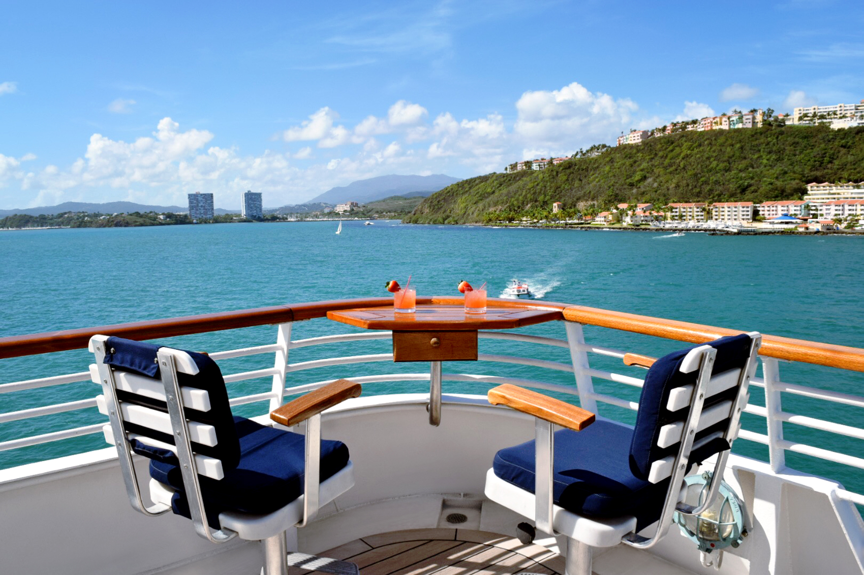 Sea Dream features a state of the art golf simulator where you can play fifty of the signature golf courses in the world (such as Pebble Beach, St. Andrews, and others). Water sports toys include kayaks, sail boats, wind-surfers wave-runners jet skis, and water skiing. Snorkeling is also available as are many inflatable which are towed behind the RIB tenders! The yacht also provides yacht charter guests with a recently new library, an Asian health spa and Wellness Center as well as full air conditioning throughout.